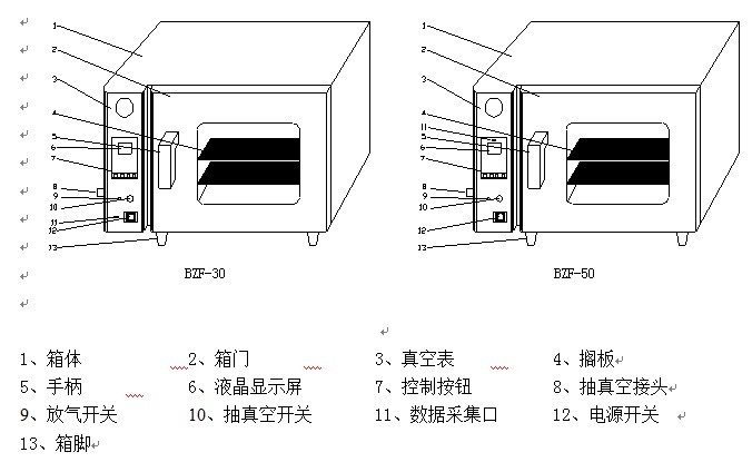5、 用戶應(yīng)根據(jù)本設(shè)備容積配置相應(yīng)的真空泵,使用前,應(yīng)用橡膠真空管(用戶自配)將真空泵與產(chǎn)品圖示中(8)抽真空接頭相連接。