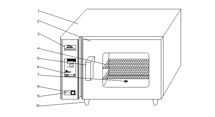 1、箱體 2、箱門(mén) 3、銘牌 4、擱板 5、手柄 6、溫度控制儀