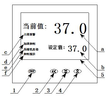 4)再按SET鍵當(dāng)前值會顯示箱內(nèi)溫度,設(shè)定值顯示所設(shè)定的值。此時溫度已設(shè)定好可以使用。