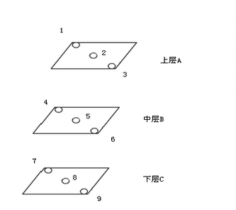 6.1.1試驗方法:在設備空載情況下,設置干燥箱的溫度分別為80℃、105℃、120℃,將溫度記錄儀的探頭置于干燥箱內的各點內,探頭不能與干燥箱腔室內金屬表面接觸,啟動干燥箱開始加熱,等干燥箱穩(wěn)定30min后啟用溫度記錄儀,每間隔5min記錄一次溫度,連續(xù)記錄4小時,每種溫度設置運行三次以檢查其重現(xiàn)性。空載溫度探頭分布如下: