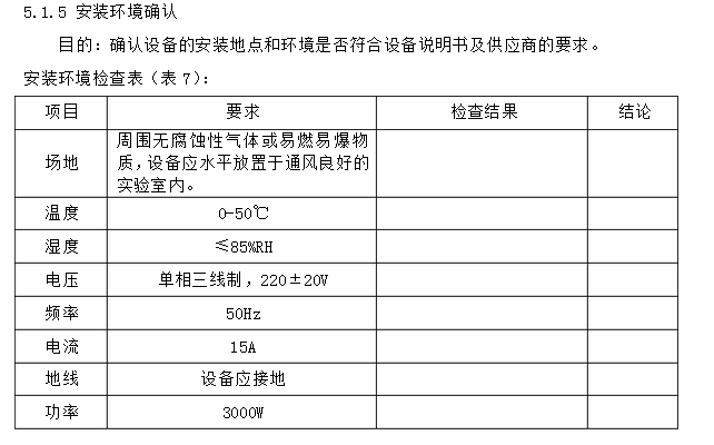 4.2.2 驗證的檢查人應經過了IQ/OQ知識的培訓,被允許作為檢查人完成安裝、運行確認工作。 5.驗證的內容 5.1安裝確認 5.1.1 設備的組成 設備組成表(表3):